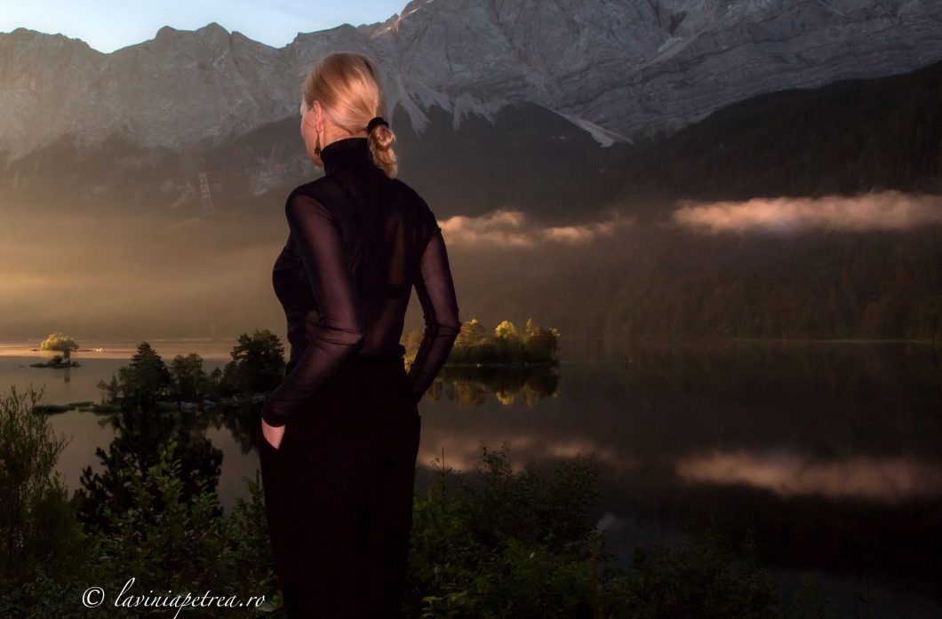 Nu vreau să intru în foarte multe detalii, mai ales că pozele vorbesc de la sine despre minunăția acestui colț de rai pe Pământ, dar vă mai spun despre marea întâlnire cu lacul Eibsee. S-a întâmplat la răsărit pentru ca experiența să fie de neuitat. Lacul se află într-un parc natural, la poalele vârfului muntos Zugspitze. Am intrat pe o cărare foarte ușor de parcurs la pas, prin pădure, și după aproximativ 30 de minute lacul ni s-a arătat în toată splendoarea lui. Este un lac glaciar cu apa fooarte limpede, iar cele câteva insulițe îl fac și mai frumos. Te uiți și nu te mai saturi și ai impresia că ești într-un basm.