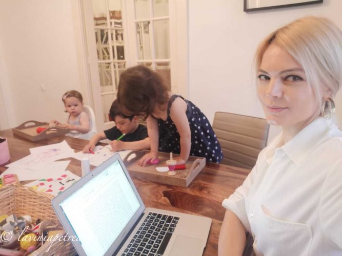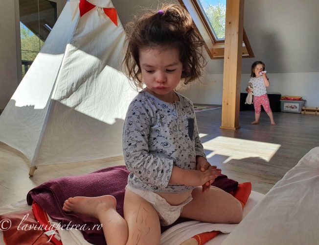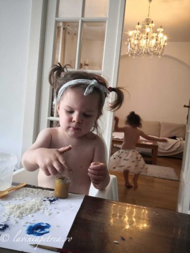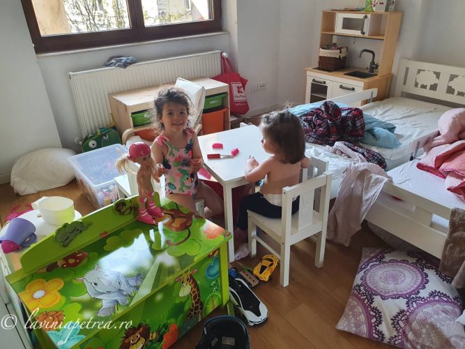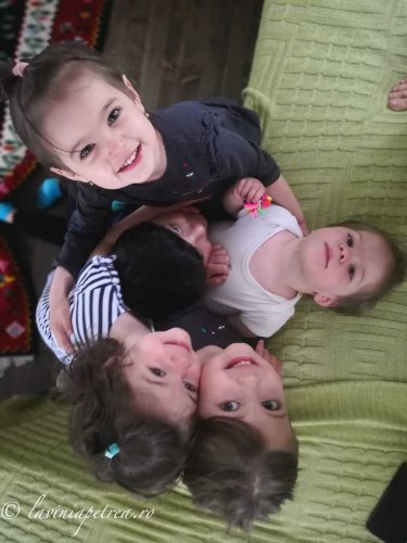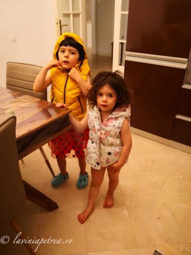 Pozele sunt făcute cu telefonul mobil, în lunile de pandemie petrecute în izolare în apartament ori la căsuța din afara Bucureștiului. În unele, fetițele sunt îmbrăcate în rochițe pentru că au fost multe zile în izolare în care ele si-au dorit să se îmbrace festiv și la fel. În câteva imagini sunt împreună cu verișoarele lor, la prima întâlnire după o lungă perioadă. (#nofilter #noedit)